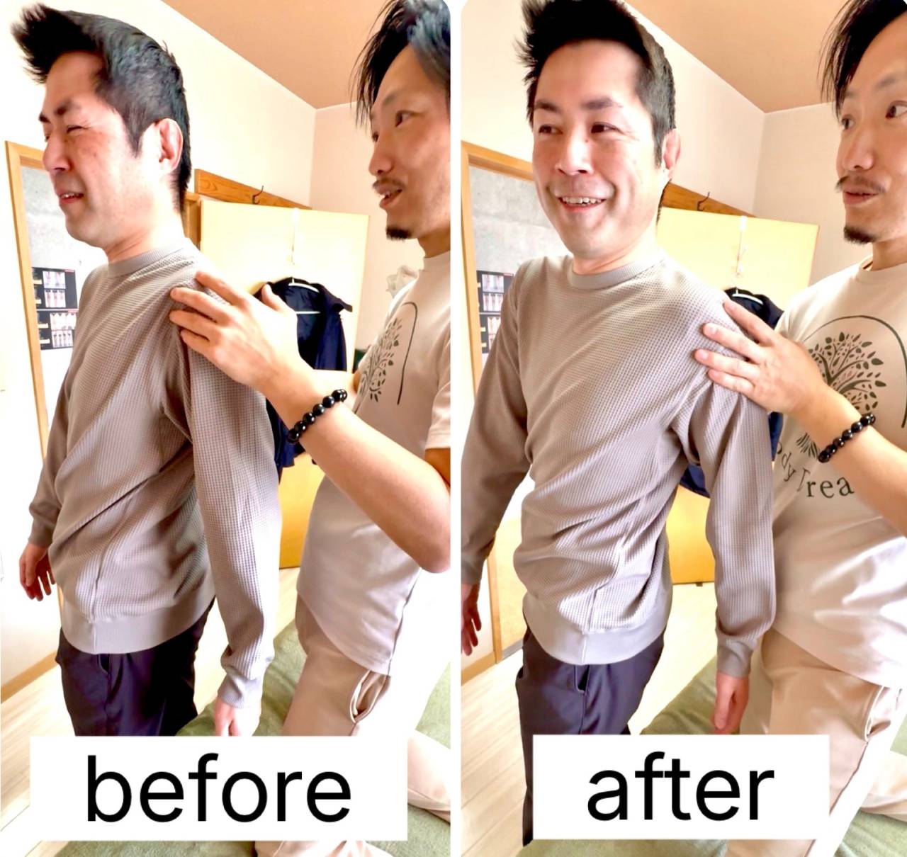 肩甲骨はがしと骨盤矯正で体の歪みを整えていくので、自然と良い姿勢が取れるようになります。